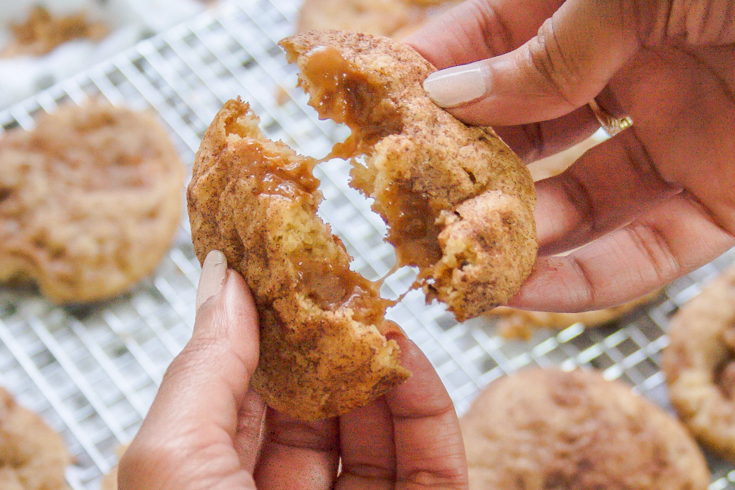 On this weekend’s menu was none other than the snickerdoodle cookie. But I didn't want just any snickerdoodle cookie, I wanted the Starbucks Toffeedoodle inspired crack-snickerdoodle cookie. It’s been over a year since I had one and I had almost forgotten what they tasted like! For some reason SBucks decided to ruin lives around the world and discontinue they’re best cookie ever. But no worries, this recipe lives up to the Holy Grail of snickerdoodles, with a gooey caramel bonus!