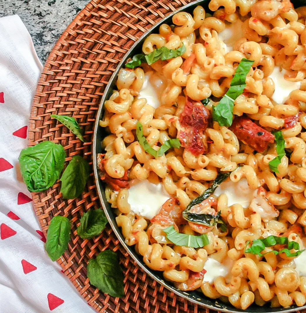 This is something that is a bit out of the box for me. We do eat a lot of pasta but it’s usually pretty basic with a pesto, alfredo or marinara sauce, meat and no extras. But I really do love sun-dried tomatoes so I wanted to think of a way to incorporate it into a pasta dish.